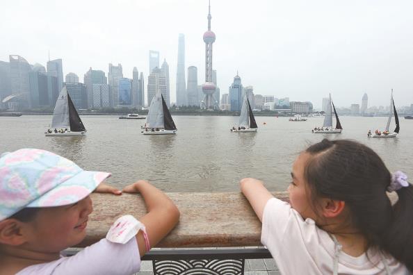 6艘J80帆船在黄浦江上扬帆启航 本版图片 记者 李铭珅 摄
