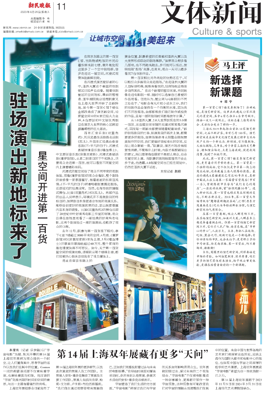 在南京东路上的第一百货C馆,当购物或吃饭的市民沿着扶梯来到七楼,意外地发现这里多了一个空中剧场群,信步走进这一星空间,沉浸式观赏体验新鲜别致。