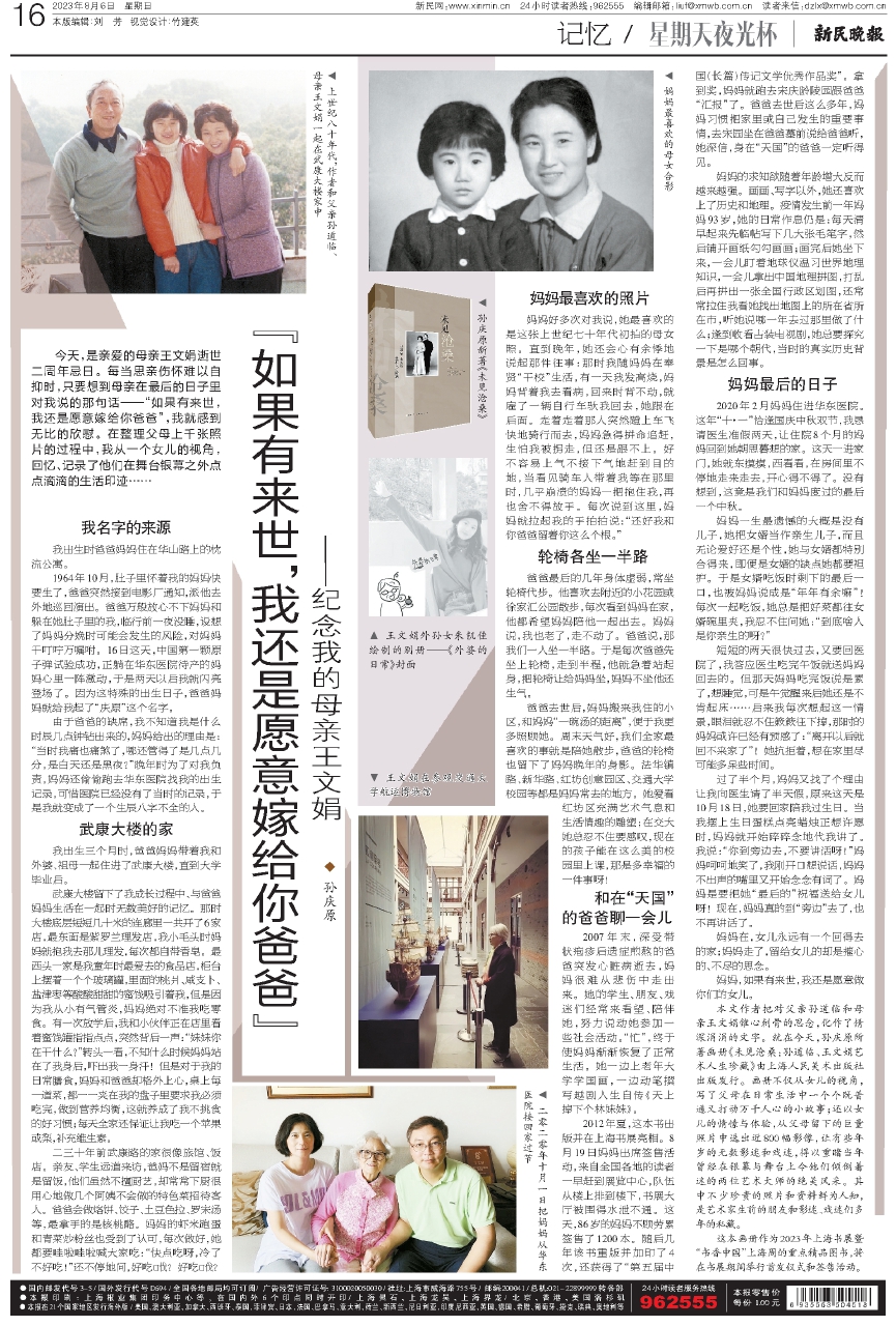 今天,是亲爱的母亲王文娟逝世二周年忌日。每当思亲伤怀难以自抑时,只要想到母亲在最后的日子里对我说的那句话——“如果有来世,我还是愿意嫁给你爸爸”,我就感到无比的欣慰。在整理父母上千张照片的过程中,我从一个女儿的视角,回忆、记录了他们在舞台银幕之外点点滴滴的生活印迹……