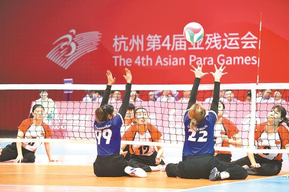 中国坐式女排队上午与泰国队交手 朱德春 摄