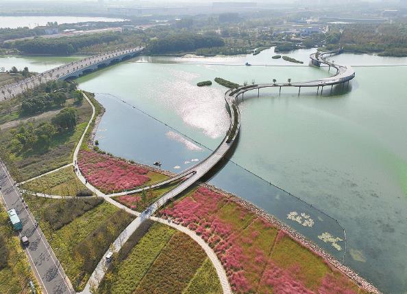 如今,成片的粉黛乱子草,满眼的木春菊,星星点点的芙蓉,为秋天的元荡增添了许多鲜亮,慢行桥上游人如织,不问青吴,共享一方秋色。这样的场景,在四年前,大概只存在于想象中。再次站在岸线旁,陆晓峰描绘起另一幅画面:国际环湖马拉松、自行车、皮划艇赛事在这里轮番登场,环湖古村落、古镇重现昔日繁华,曲水善湾、大观园成为示范区美丽风景新地标。