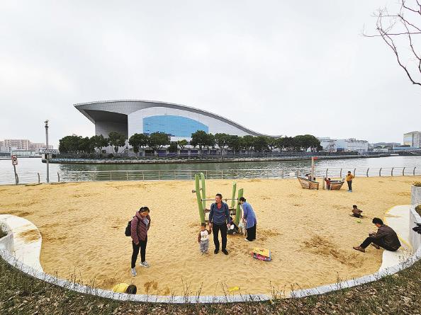 图为专为孩子们准备的沙坑和亲水平台,面积足足有1100平方米 本报记者 张龙 摄影报道