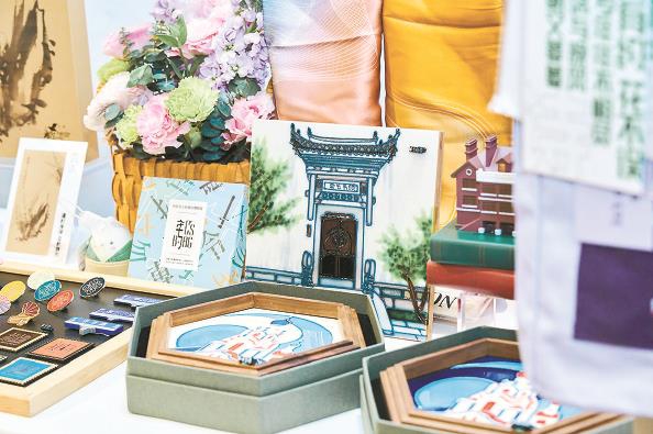 上海图书公司展示了龘龙建盏礼盒、玉兔祈福香篆礼盒、郑辛遥签名版“智慧快餐”漫画扑克牌、戴敦邦迎春版画作品《财神》、徐建融京剧人物书画拼图等“大师联名”系列文创和《飞影阁》版画、“古籍中的侠义”系列杯垫、明清版刻赏真、铜鱼镇纸、老期刊创刊号系列文创等极具文化内涵的文创产品。大隐书局以旗下多家书店的文创产品参展,九棵树艺术书店的文创作品以音乐为主题,以笔记本、包包、徽章、收纳袋、雨伞等常用的物品为载体呈现;大隐书局·和平公园刊茶社与和平公园携手联名发行多种文创,其中不仅有幸运草的伴手礼,更有绘有和平公园花草图案的书灯。