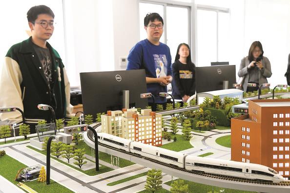 复旦大学近年为新专业的人才培养计划提供更多优质的教育资源。图为学生们正在新建的元创中心物联网实验室做实验 本报记者 徐程 摄