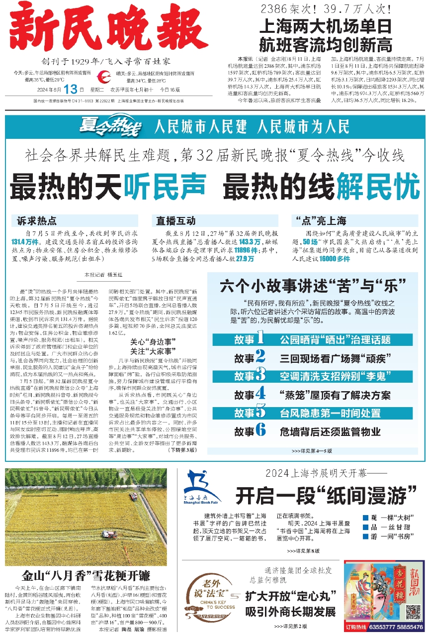 本报讯(记者 金志刚)8月11日,上海机场航班量达到2386架次,其中,浦东机场1597架次,虹桥机场789架次;客流量达到39.7万人次,其中,浦东机场25.4万人次,虹桥机场14.3万人次。上海两大机场单日航班量和客流量均创历史新高。