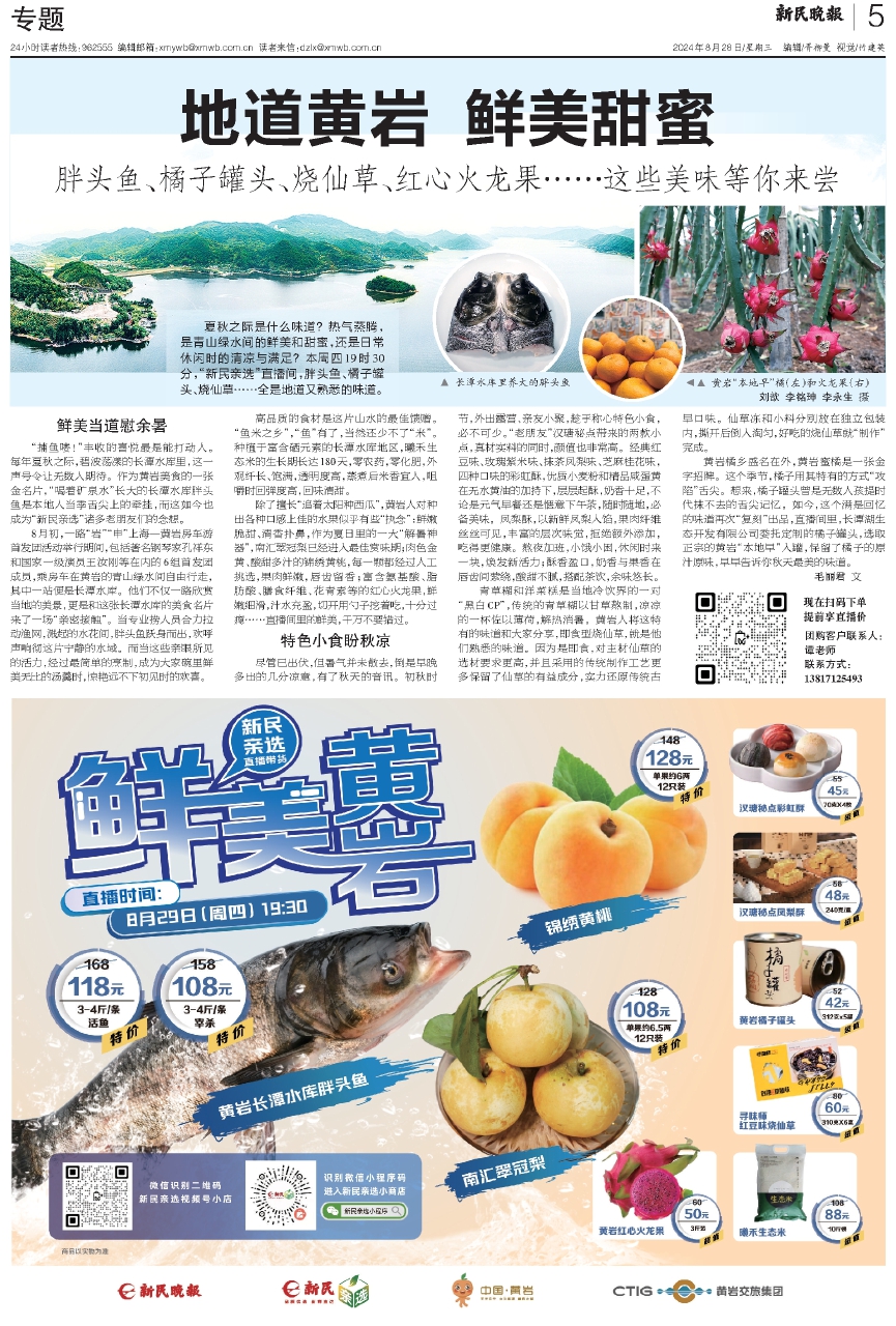 夏秋之际是什么味道?热气蒸腾,是青山绿水间的鲜美和甜蜜,还是日常休闲时的清凉与满足?本周四19时30分,“新民亲选”直播间,胖头鱼、橘子罐头、烧仙草……全是地道又熟悉的味道。