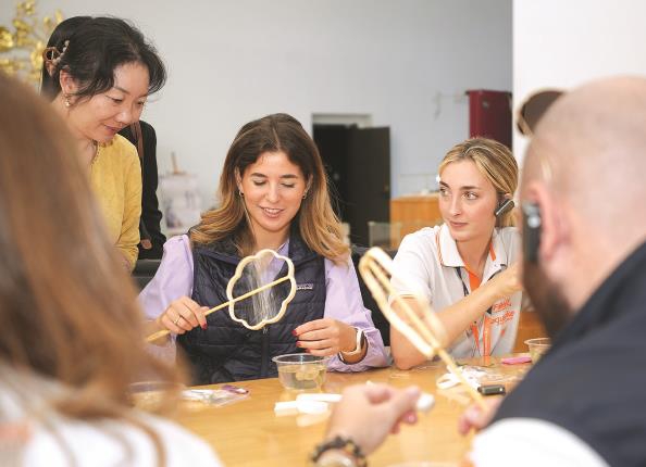 比赛间隙,参赛选手和大赛官员走进上海宝山国际民间艺术博览馆体验传统非遗魅力 本报记者 刘歆 摄