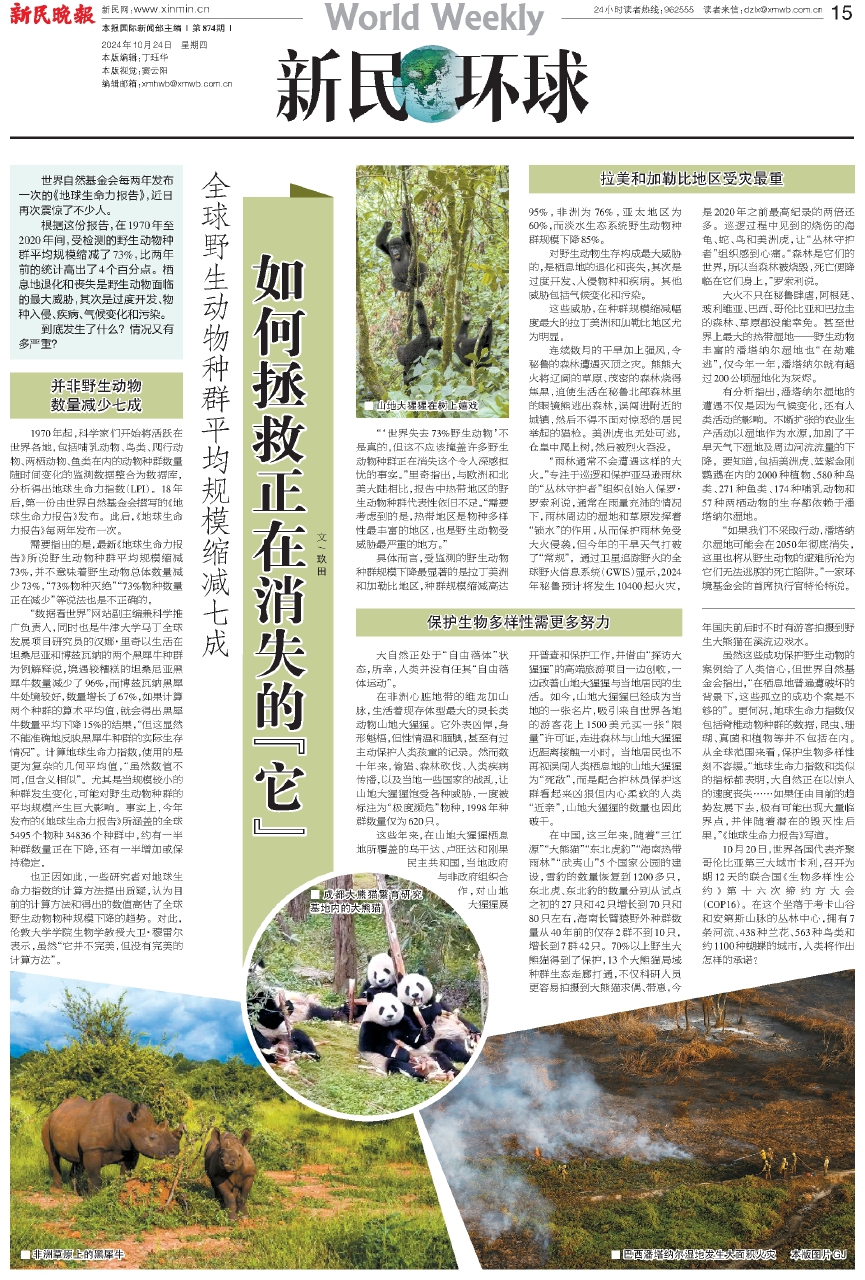 需要指出的是,最新《地球生命力报告》所说野生动物种群平均规模缩减73%,并不意味着野生动物总体数量减少73%,“73%物种灭绝”“73%物种数量正在减少”等说法也是不正确的。