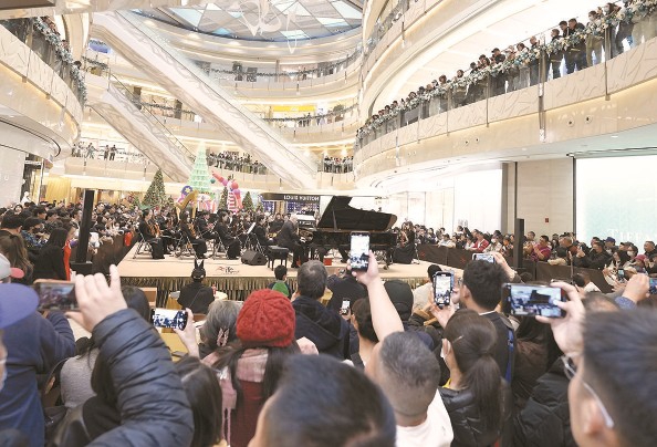 昨天,钢琴家孔祥东携手上海爱乐乐团,在上海ifc商场为市民游客带来新年序曲,送上节日祝福。饱含激情的演奏和令人震撼的现场音效,赢得阵阵掌声。 本报记者 刘歆 摄影报道