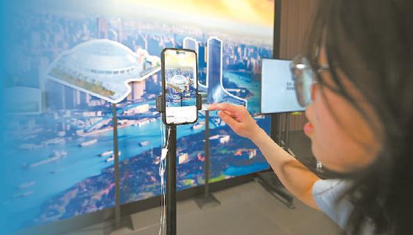 观众在技术交流日现场,体验智能影像识别景点讲解播报软件 本报记者 徐程 摄