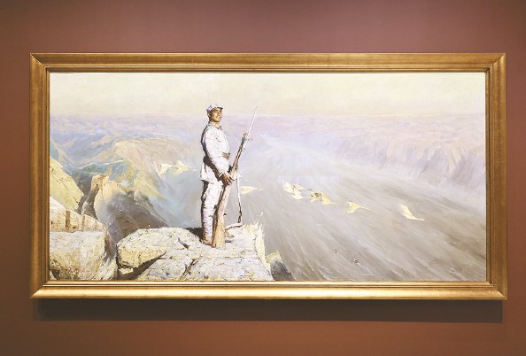“《占领总统府》中,让我最感到意外的是,那位升旗的战士,仰起脸,视线掠过缕缕硝烟,他带着略微羞涩的表情展开红旗——多像今天在天安门广场上升旗的那些战士的神情和姿态。”冯远说。这是一位画家靠合理想象,建立在对史实、文献资料深入理解上的创意。陈逸飞把现实主义和浪漫主义相结合,展现了强大的造型能力和驾驭能力。