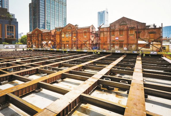 目前国内体量最大的组团式石库门建筑群归位工程——张园“华严里”施工现场 本报记者 陈梦泽 摄