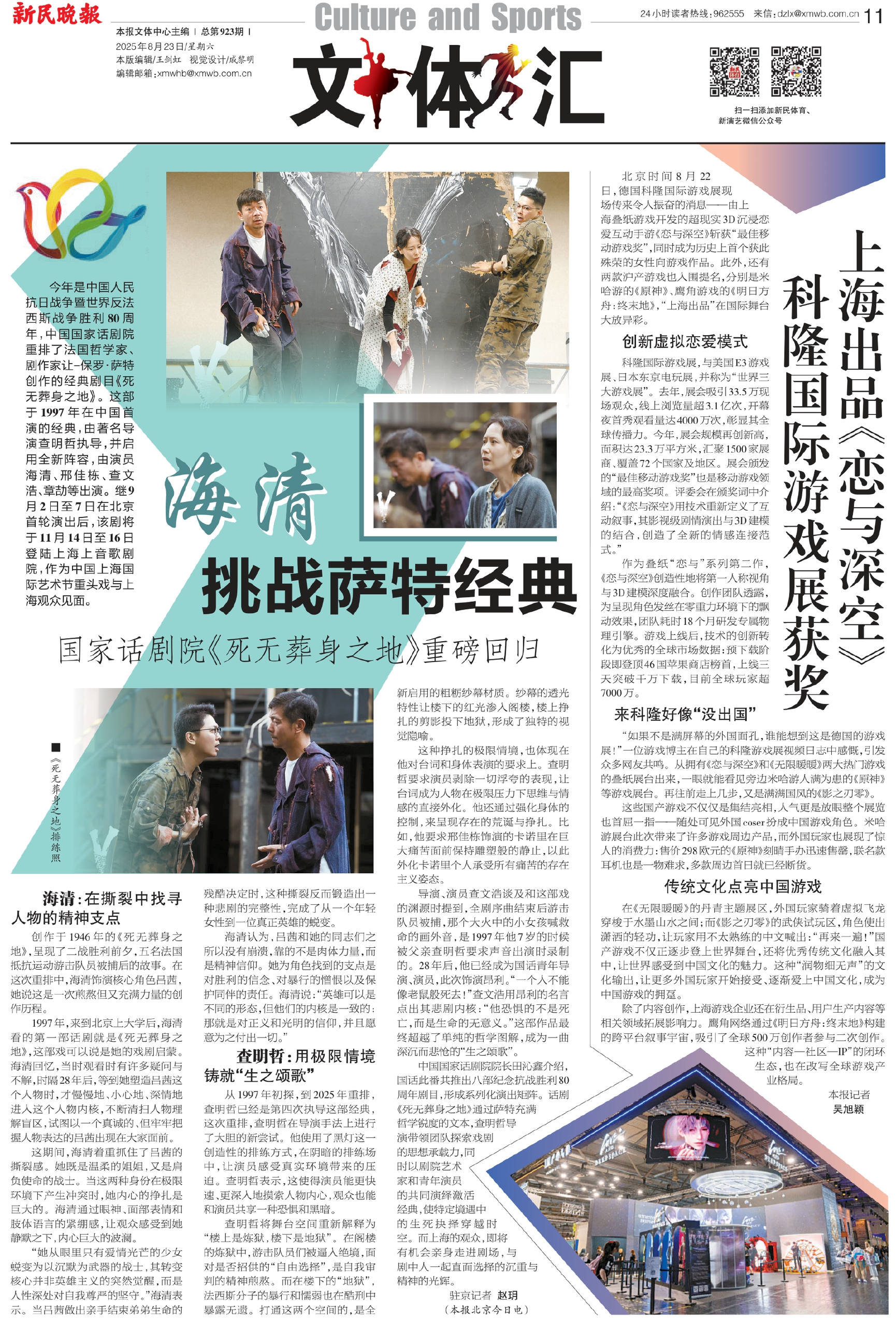 今年是中国人民抗日战争暨世界反法西斯战争胜利80周年,中国国家话剧院重排了法国哲学家、剧作家让-保罗·萨特创作的经典剧目《死无葬身之地》。这部于1997年在中国首演的经典,由著名导演查明哲执导,并启用全新阵容,由演员海清、邢佳栋、查文浩、章劼等出演。继9月2日至7日在北京首轮演出后,该剧将于11月14日至16日登陆上海上音歌剧院,作为中国上海国际艺术节重头戏与上海观众见面。