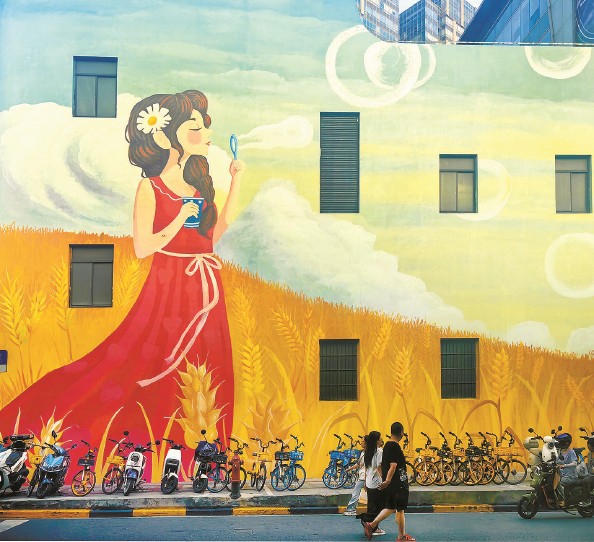 近日,中山北一路同煌路交会处的一处建筑外墙悄然“换装”,一幅约300平方米的巨型墙绘吸引了众多行人驻足观看。画面中,一名长发少女站在金黄的麦浪中,蓝天、金穗、红裙相互交织,描绘出一幅充满梦幻、丰收与未来的图景。 虹口区绿化市容局正以“同心路周边美丽街区深耕项目”为契机,通过墙面彩绘的方式,着力打造区域内充满生活气息与人文温度的活力场景。 杨建正 摄影报道