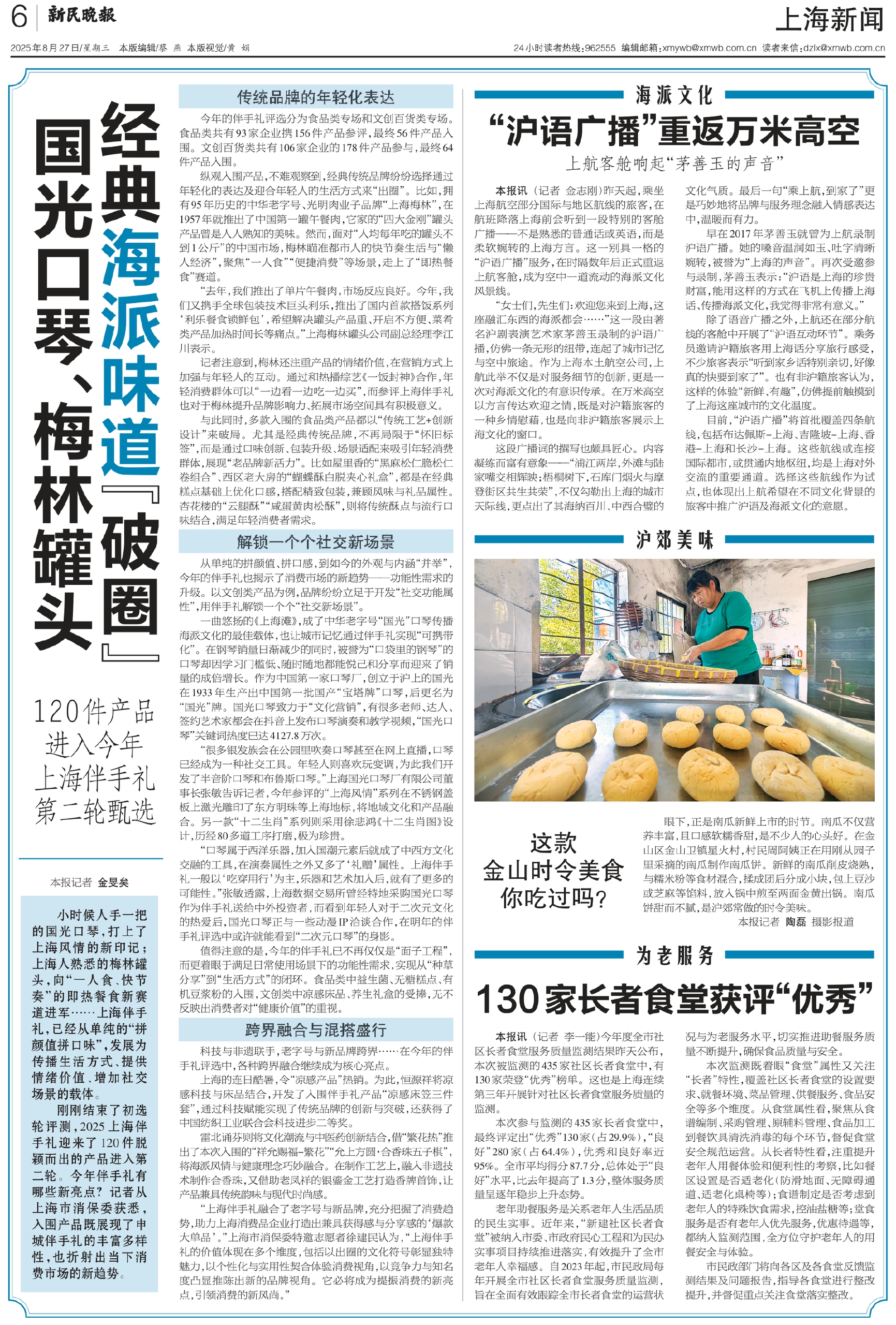 小时候人手一把的国光口琴,打上了上海风情的新印记;上海人熟悉的梅林罐头,向“一人食、快节奏”的即热餐食新赛道进军……上海伴手礼,已经从单纯的“拼颜值拼口味”,发展为传播生活方式、提供情绪价值、增加社交场景的载体。