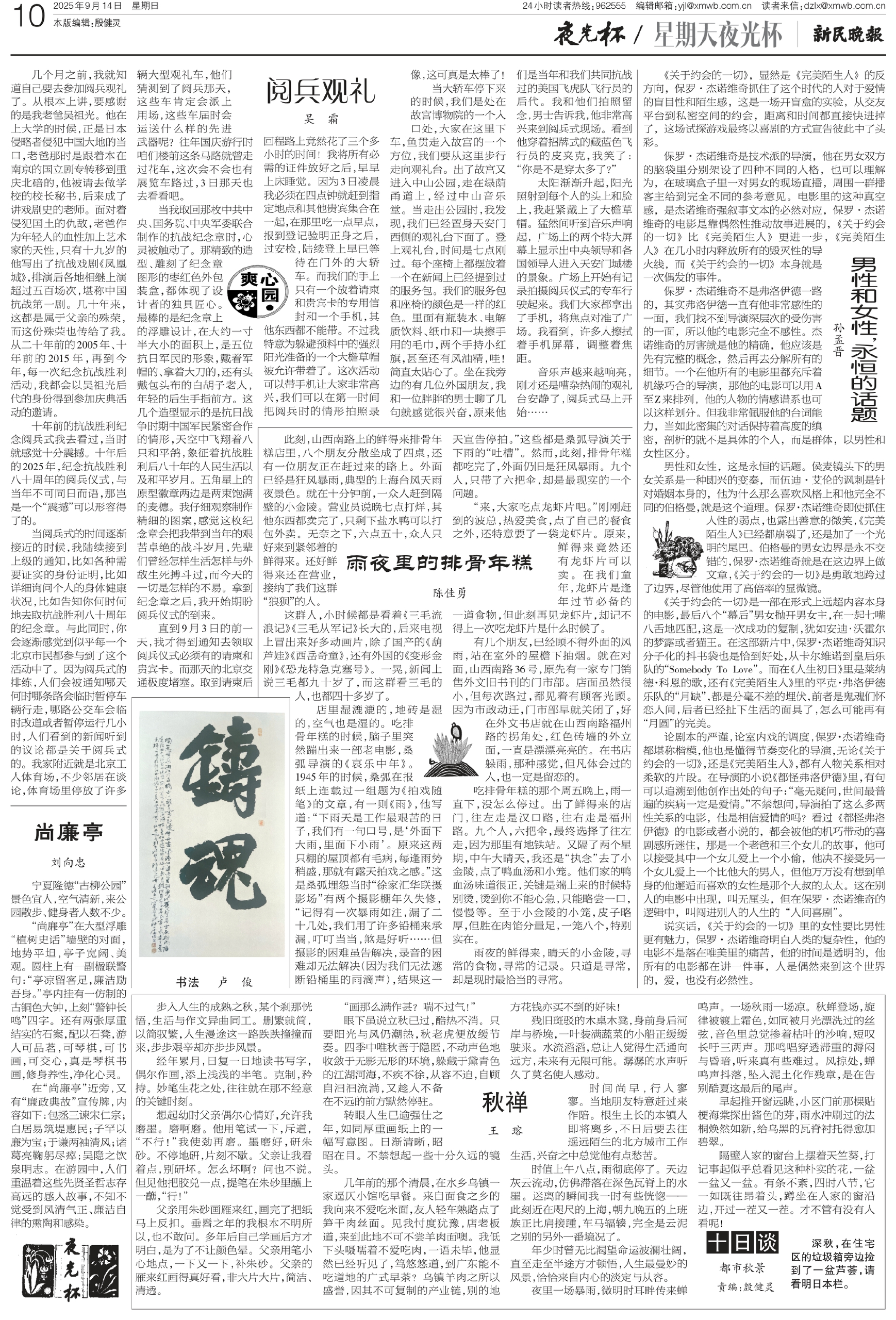 当阅兵式的时间逐渐接近的时候,我陆续接到上级的通知,比如各种需要证实的身份证明,比如详细询问个人的身体健康状况,比如告知你何时何地去取抗战胜利八十周年的纪念章。与此同时,你会逐渐感觉到似乎每一个北京市民都参与到了这个活动中了。因为阅兵式的排练,人们会被通知哪天何时哪条路会临时暂停车辆行走,哪路公交车会临时改道或者暂停运行几小时,人们看到的新闻听到的议论都是关于阅兵式的。我家附近就是北京工人体育场,不少邻居在谈论,体育场里停放了许多辆大型观礼车,他们猜测到了阅兵那天,这些车肯定会派上用场,这些车届时会运送什么样的先进武器呢?往年国庆游行时咱们楼前这条马路就曾走过花车,这次会不会也有展览车路过,3日那天也去看看吧。