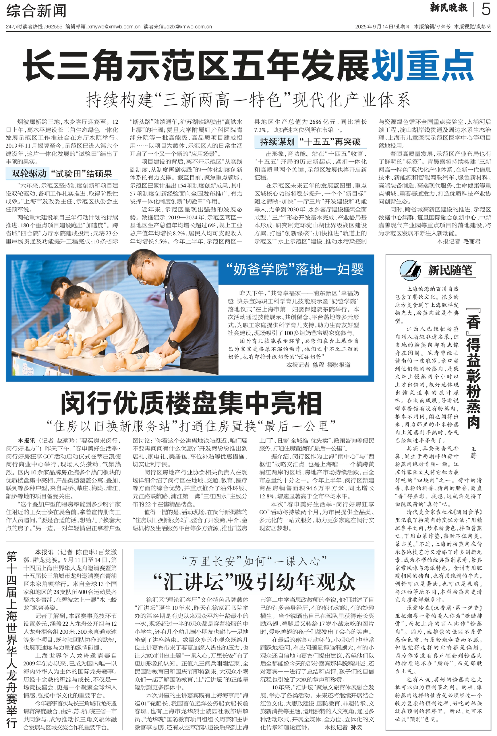 在示范区未来五年的发展蓝图里,重点区域核心功能将稳步提升,一个个“新目标”随之清晰:加快“一厅三片”开发建设和功能导入,力争到2030年,水乡客厅建设框架全面成型,“三片”形态开发基本完成、产业格局基本形成;研究制定环淀山湖世界级湖区建设方案,打造“创新绿核”;加快推进“轨道上的示范区”“水上示范区”建设,推动水污染控制与资源绿色循环全国重点实验室、太浦河后续工程、淀山湖岸线贯通及周边水系生态治理、上海市儿童医院示范区医学中心等项目落地投用。