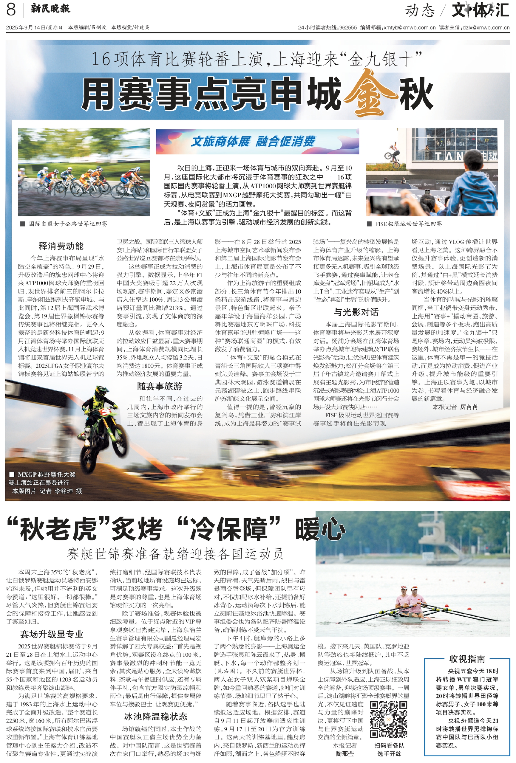 当体育的呐喊与光影的璀璨同框,当工业锈带变身运动秀带,上海用“赛事+”撬动商圈、旅游、会展、制造等多个板块,跑出高质量发展的加速度。“金九银十”只是序章,赛场内,运动员突破极限;赛场外,城市经济拔节生长——在这里,体育不再是单一的竞技活动,而是成为拉动消费、促进产业升级、提升城市能级的重要引擎。上海正以赛事为笔,以城市为卷,书写着体育与经济融合发展的新篇章。