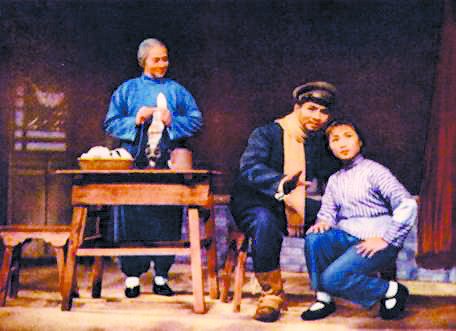 沪剧《红灯记》,左起:凌爱珍(饰李奶奶)、袁滨忠(饰李玉和)、韩玉敏(饰李铁梅)
