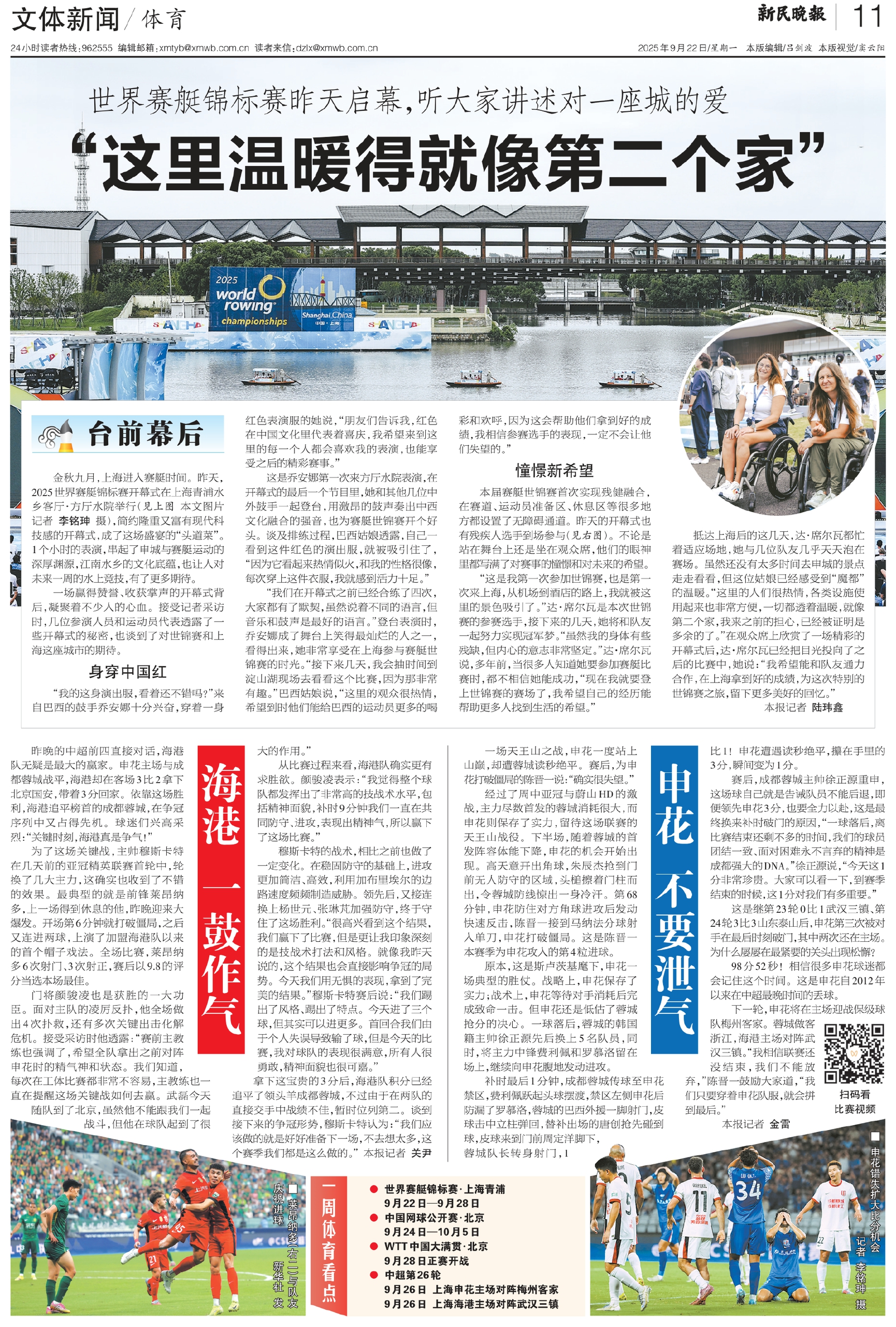 金秋九月,上海进入赛艇时间。昨天,2025世界赛艇锦标赛开幕式在上海青浦水乡客厅·方厅水院举行(见上图 本文图片记者 李铭珅 摄),简约隆重又富有现代科技感的开幕式,成了这场盛宴的“头道菜”。1个小时的表演,串起了申城与赛艇运动的深厚渊源,江南水乡的文化底蕴,也让人对未来一周的水上竞技,有了更多期待。