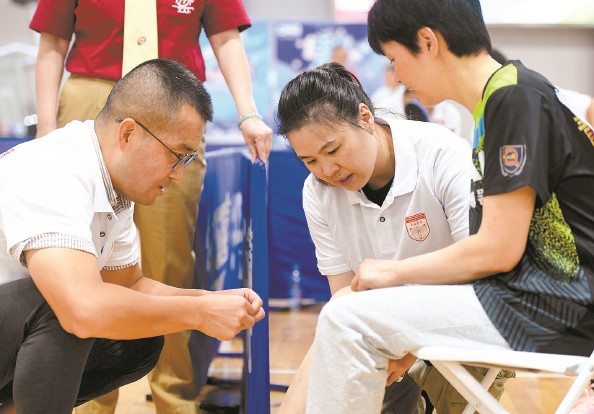 华山医院医生为选手治疗 本版图片 记者 李铭珅 摄