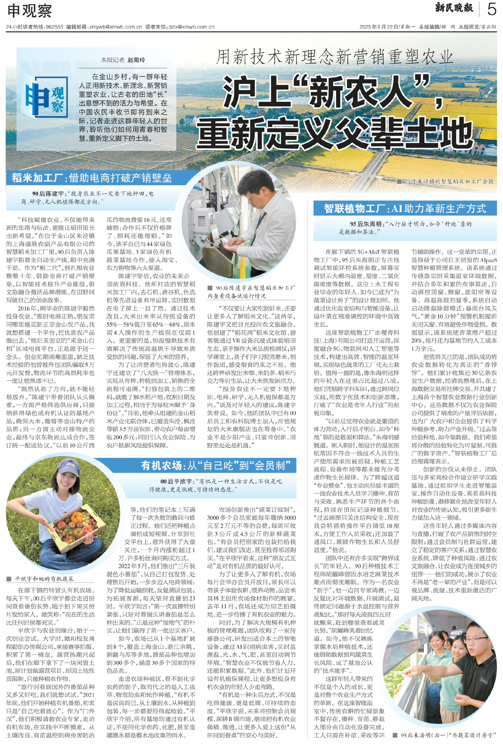 在金山乡村,有一群年轻人正用新技术、新理念、新营销重塑农业,让古老的田地“长”出意想不到的活力与希望。在中国农民丰收节即将到来之际,记者走进这群年轻人的世界,聆听他们如何用青春和智慧,重新定义脚下的土地。
