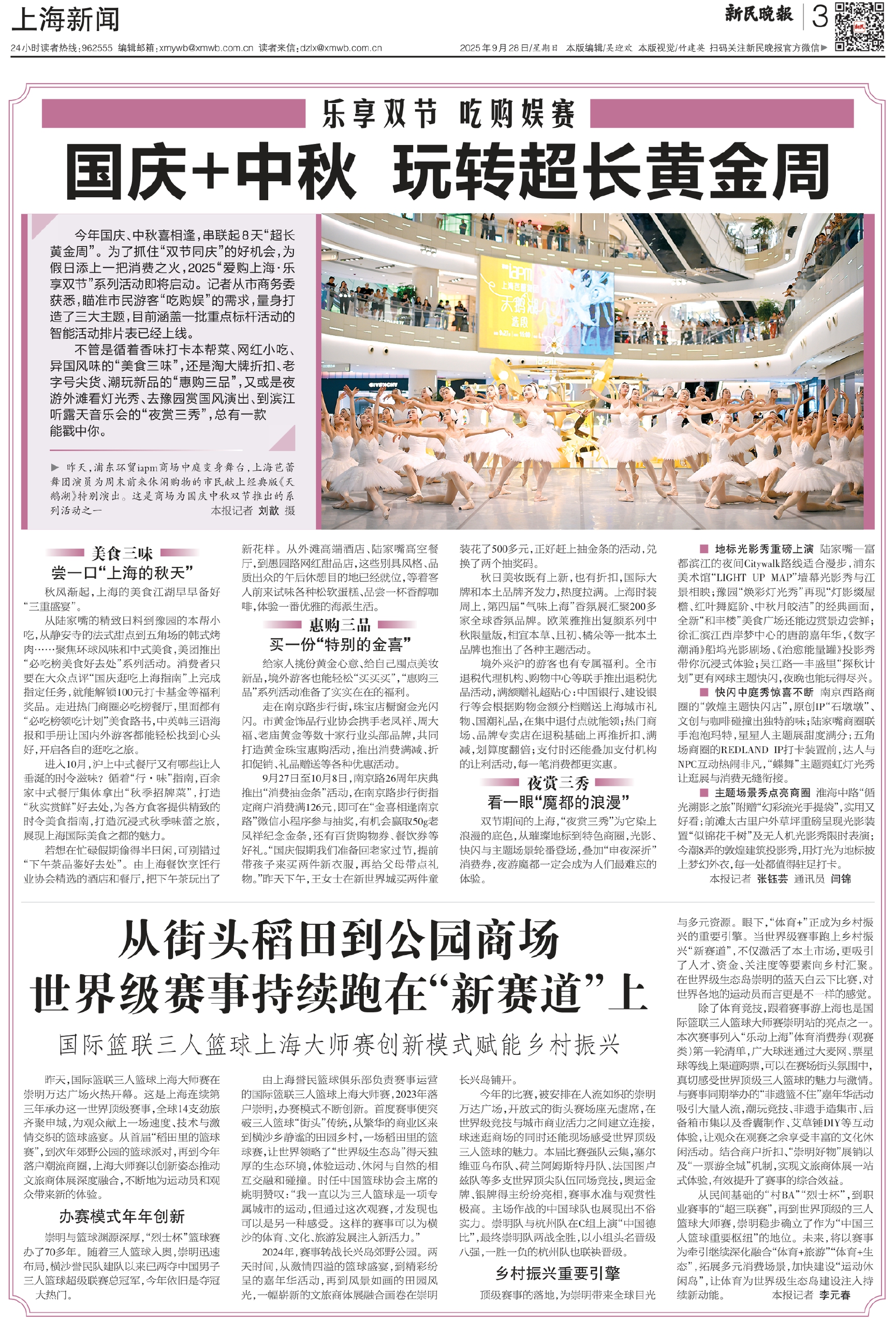 不管是循着香味打卡本帮菜、网红小吃、异国风味的“美食三味”,还是淘大牌折扣、老字号尖货、潮玩新品的“惠购三品”,又或是夜游外滩看灯光秀、去豫园赏国风演出、到滨江听露天音乐会的“夜赏三秀”,总有一款能戳中你。