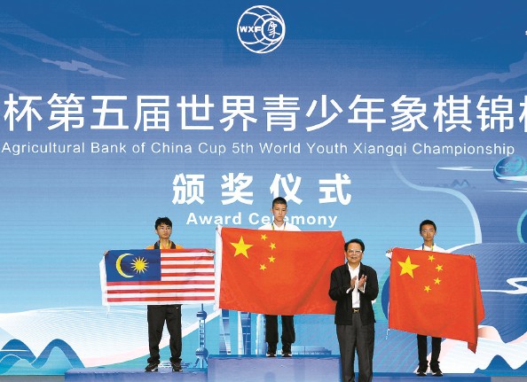 颁奖环节,胡荣华上台为世锦赛U16男子个人项目授奖(见上图)。来自中国和马来西亚的三名小棋手站在象棋宗师身后,留下了一张珍贵的合影。从胡荣华手中接过金牌的是袁玮浩,上海培养的优秀苗子。对这名后生,胡大师青睐有加:“他只有14岁,所以是低龄打高龄,拿到冠军确实不容易。也希望将来他能够更上一层楼。”