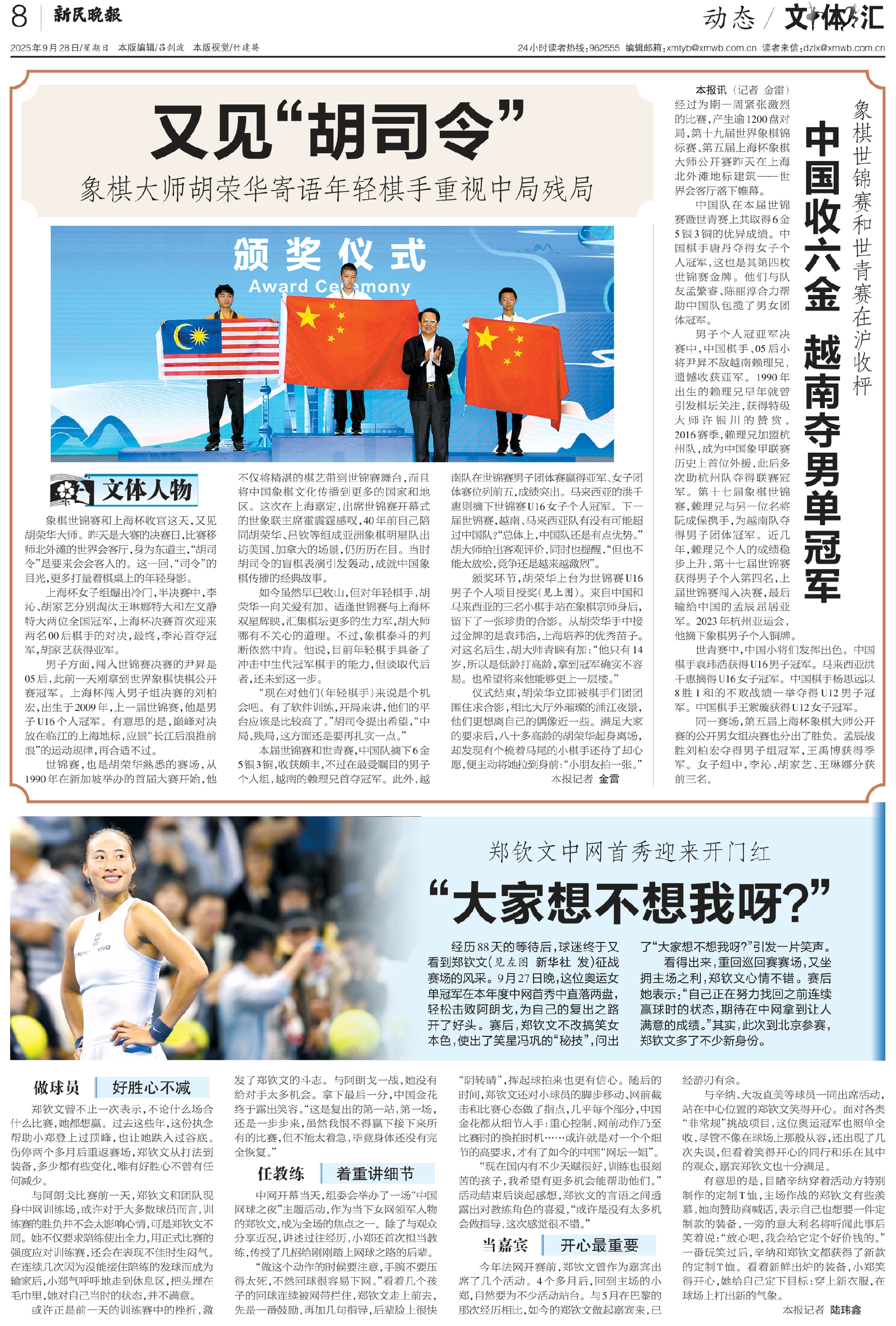 “现在对他们(年轻棋手)来说是个机会吧。有了软件训练,开局来讲,他们的平台应该是比较高了。”胡司令提出希望,“中局、残局,这方面还是要再扎实一点。”