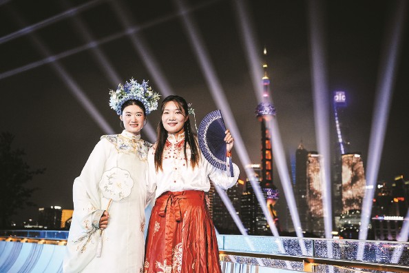 连上海籍选手张灵、陈云霞都是头回穿汉服、戴簪花,她们趁着间隙和外国选手合影:“这样的交流比说话管用,一下子就亲近了。”帆船奥运冠军徐莉佳更带着大伙儿跳起了“科目三”,她坦言:“以前在国外比赛没机会这么‘晒’文化,这次在家门口当向导,挺骄傲的。”