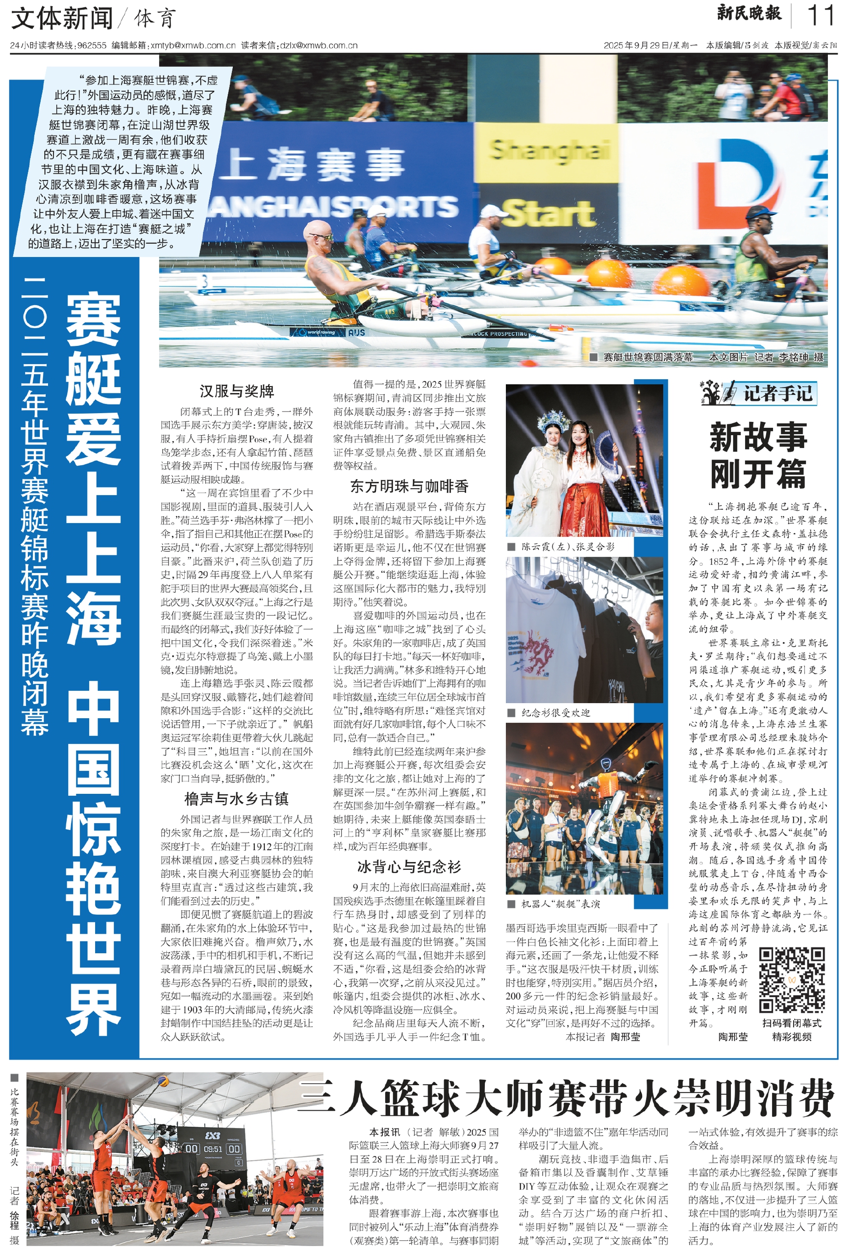 “参加上海赛艇世锦赛,不虚此行!”外国运动员的感慨,道尽了上海的独特魅力。昨晚,上海赛艇世锦赛闭幕,在淀山湖世界级赛道上激战一周有余,他们收获的不只是成绩,更有藏在赛事细节里的中国文化、上海味道。从汉服衣襟到朱家角橹声,从冰背心清凉到咖啡香暖意,这场赛事让中外友人爱上申城、着迷中国文化,也让上海在打造“赛艇之城”的道路上,迈出了坚实的一步。
