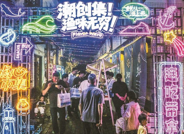 本报讯(记者 赵菊玲)米鱼饼在铁板上滋滋作响,黄鱼春卷金黄酥脆,海鲜一尺面热气腾腾……20多种特色小吃汇聚成一场舌尖上的“渔味”盛宴,也唤醒了“上海最后一个活着的渔村”的夜。昨晚,位于金山山阳镇的金山嘴渔村老街灯火通明,人潮涌动,“渔乐无穷·光影同心”第十五届上海湾区海渔文化节在此拉开帷幕。