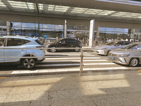 下午3时许,记者实地探访该平台。因区域实行“即停即走”规定,多数车辆集中在2号口外侧车道下客。但令人费解的是,正对10号、12号进站口的斑马线通道,被一排临时铁栏完全阻断,无法通行。