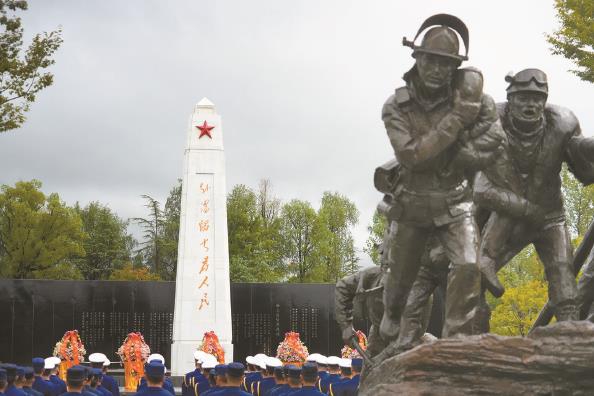 今天11时,在位于松江的上海消防烈士纪念园,上海市消防救援总队举行向消防烈士敬献花篮仪式。上海火焰蓝消防救援公益基金会代表、烈属代表、老干部代表、少先队员代表等200余人参加活动。 本报记者 张龙 摄影报道