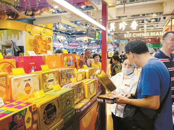 近日,沪上月饼销售进入高峰,南京路步行街各大老字号顾客络绎不绝 杨建正 摄