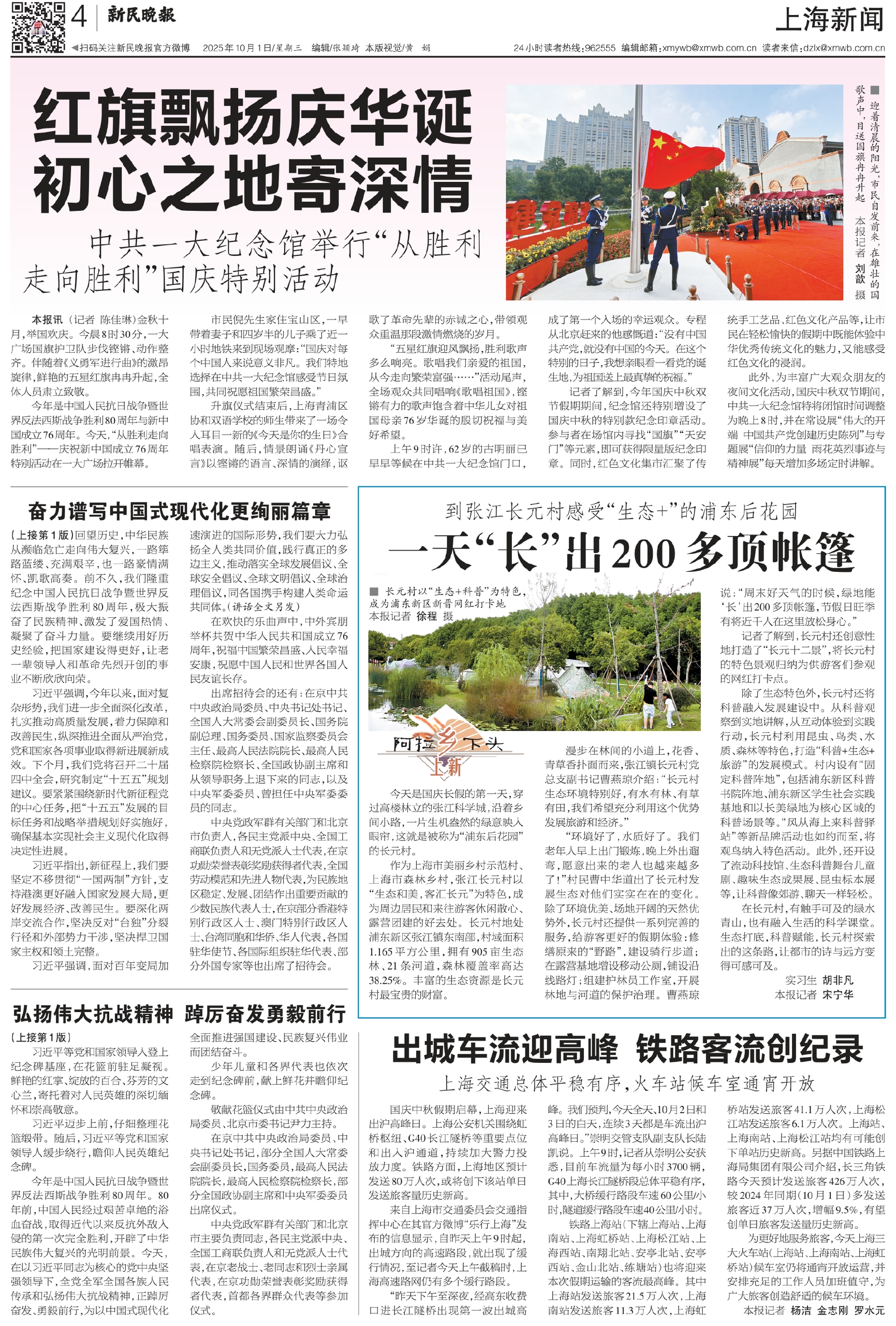 今年是中国人民抗日战争暨世界反法西斯战争胜利80周年与新中国成立76周年。今天,“从胜利走向胜利”——庆祝新中国成立76周年特别活动在一大广场拉开帷幕。