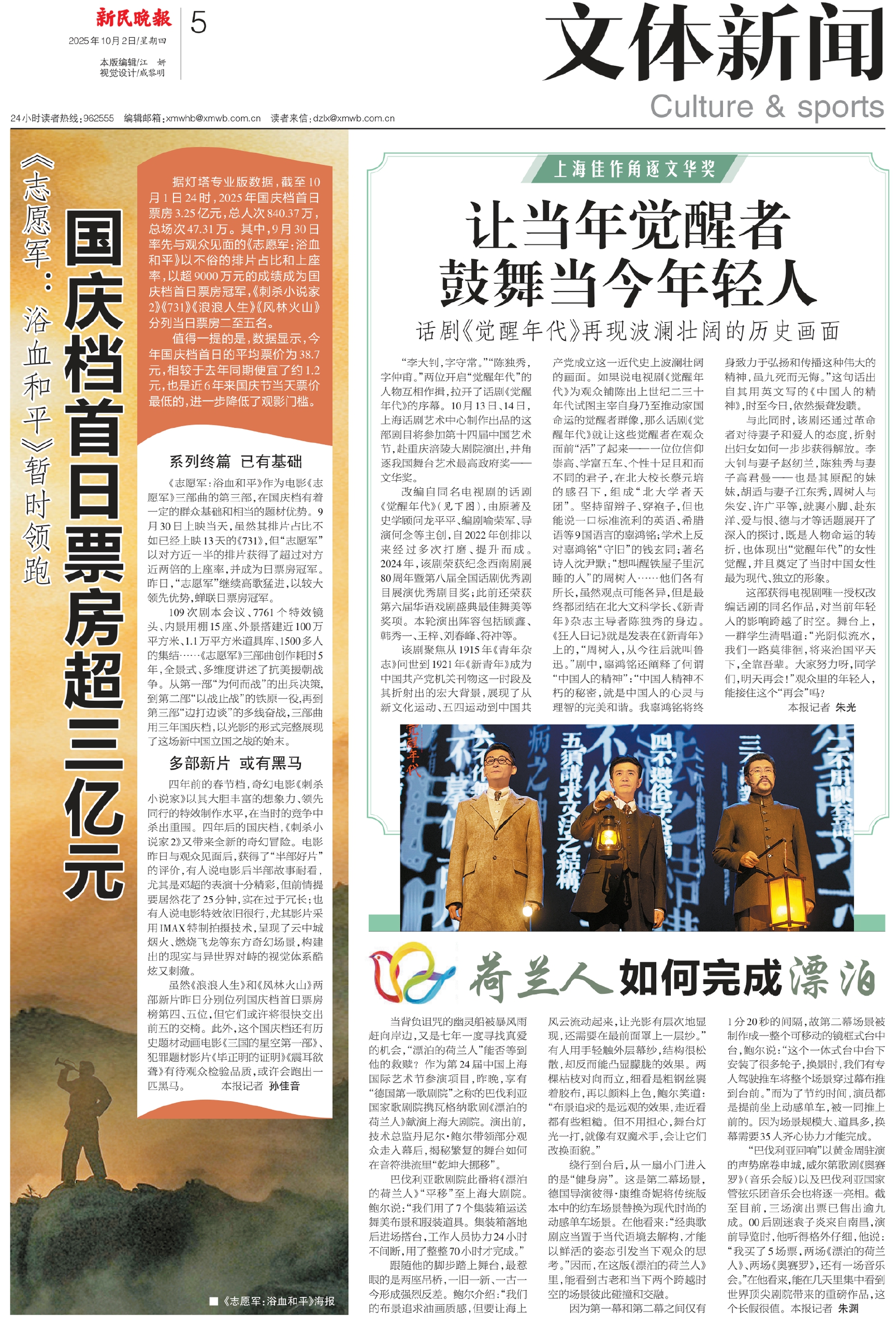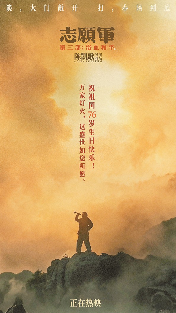 109次剧本会议、7761个特效镜头、内景用棚15座、外景搭建近100万平方米、1.1万平方米道具库、1500多人的集结……《志愿军》三部曲创作耗时5年,全景式、多维度讲述了抗美援朝战争。从第一部“为何而战”的出兵决策,到第二部“以战止战”的铁原一役,再到第三部“边打边谈”的多线奋战,三部曲用三年国庆档,以光影的形式完整展现了这场新中国立国之战的始末。