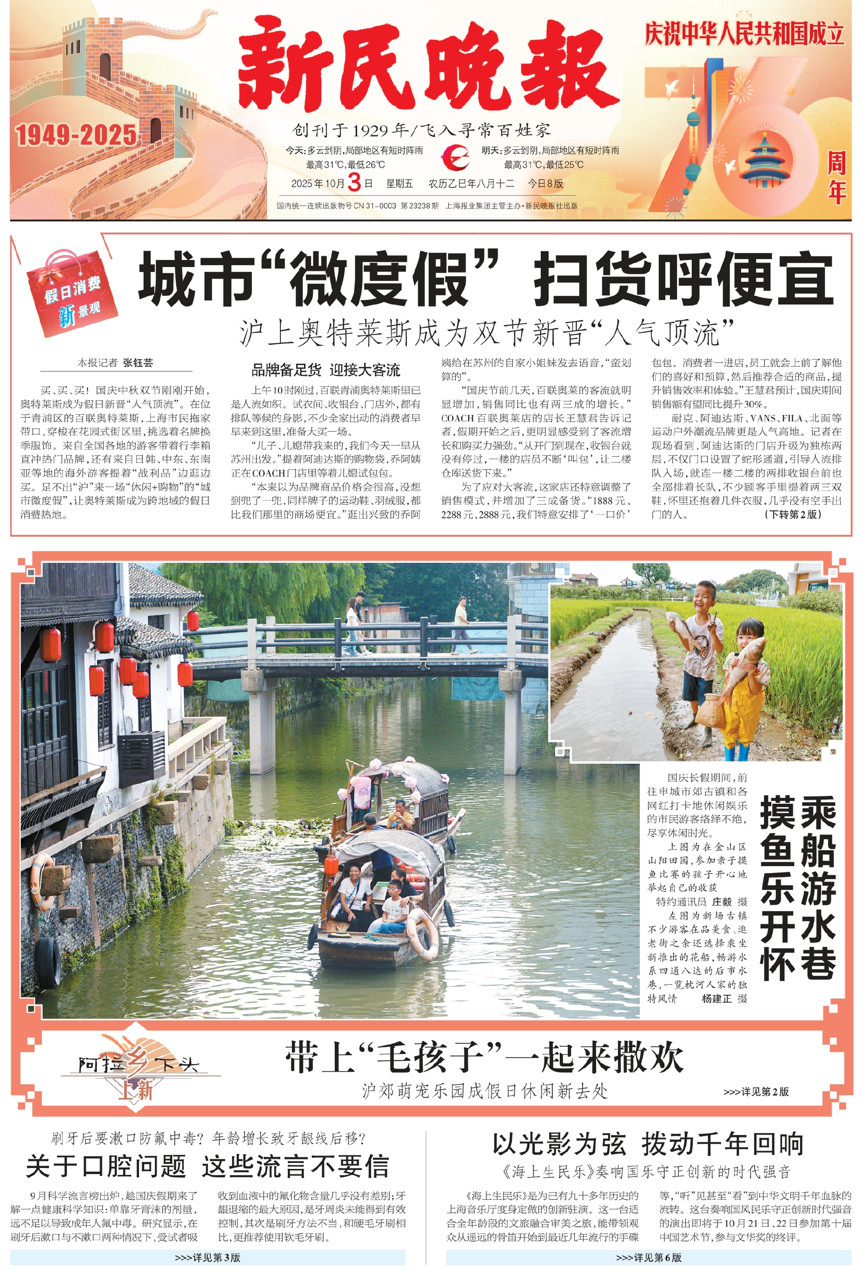 买、买、买!国庆中秋双节刚刚开始,奥特莱斯成为假日新晋“人气顶流”。在位于青浦区的百联奥特莱斯,上海市民拖家带口,穿梭在花园式街区里,挑选着名牌换季服饰。来自全国各地的游客带着行李箱直冲热门品牌,还有来自日韩、中东、东南亚等地的海外游客提着“战利品”边逛边买。足不出“沪”来一场“休闲+购物”的“城市微度假”,让奥特莱斯成为跨地域的假日消费热地。