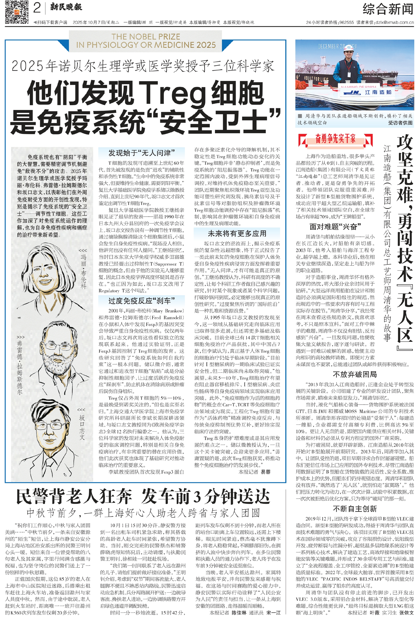 Treg仅占外周T细胞的5%—10%,是最晚受到诺奖关注的。“但也是实至名归。”上海交通大学医学院上海市免疫学研究所科研副所长李斌长期深耕该领域,与坂口志文教授同为《欧洲免疫学杂志》全球12名执行编委之一。他认为,三位科学家的发现对未来解决人体免疫耐受的临床调控问题,特别是相关自身免疫病治疗,有非常重要的潜在应用价值,他们此次获奖也体现了基础研究对推动临床治疗的重要意义。