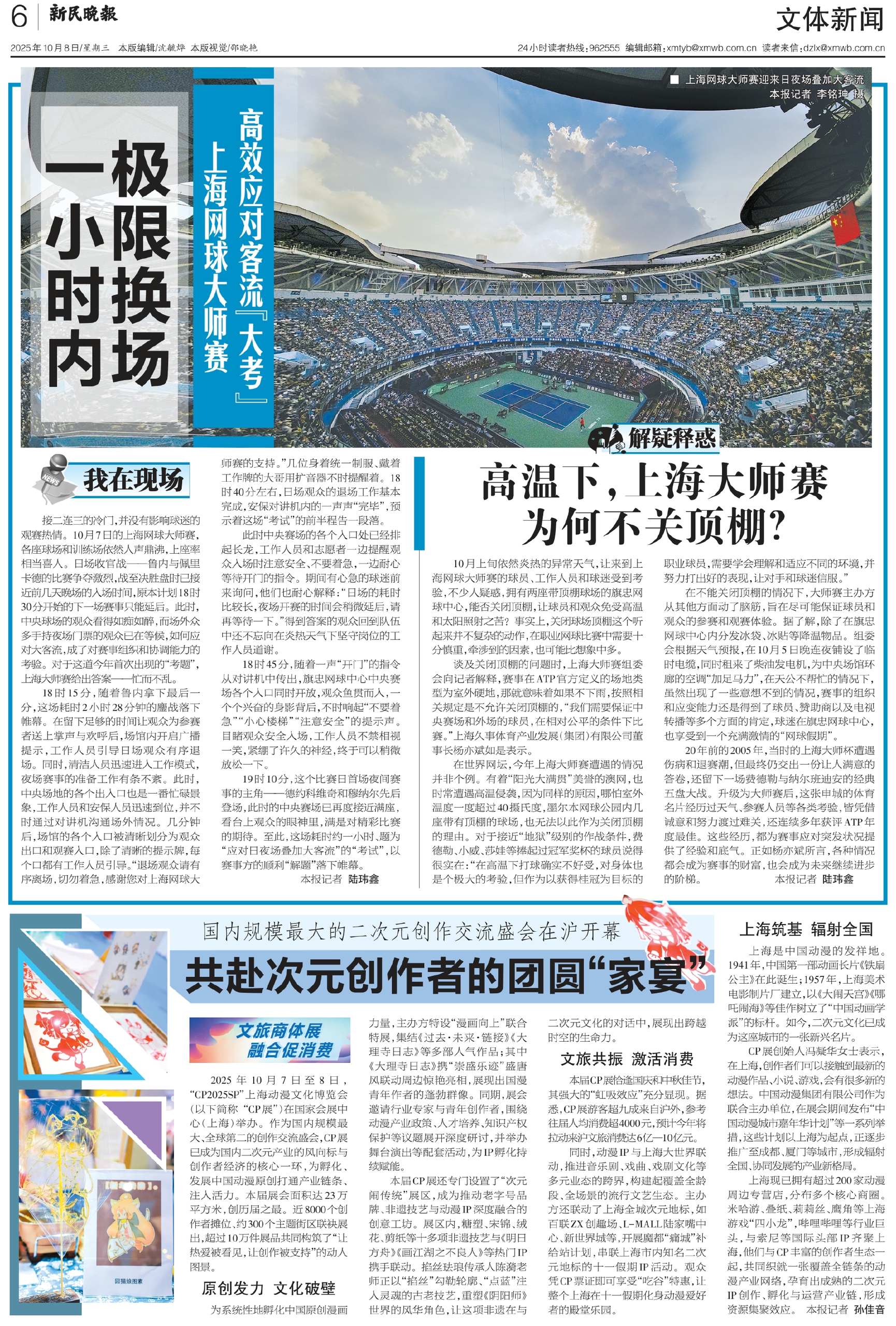19时10分,这个比赛日首场夜间赛事的主角——德约科维奇和穆纳尔先后登场,此时的中央赛场已再度接近满座,看台上观众的眼神里,满是对精彩比赛的期待。至此,这场耗时约一小时、题为“应对日夜场叠加大客流”的“考试”,以赛事方的顺利“解题”落下帷幕。