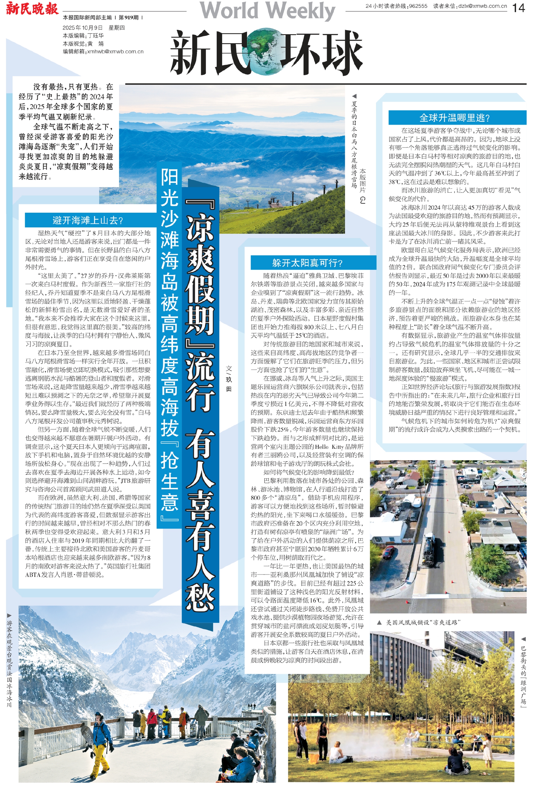 不断上升的全球气温正一点一点“侵蚀”着许多旅游景点的面貌和部分依赖旅游业的地区经济,预告着更严峻的挑战。而旅游业本身也在某种程度上“助长”着全球气温不断升高。