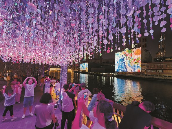 另外,结合上海旅游节、上海国际光影节,陆家嘴富都滨江、新天地、豫园商城、吴江路-丰盛里、西岸梦中心等五个夜间地标还开展了“申夜深折”夜间促消费活动,核销率超七成,资金撬动效应显著。