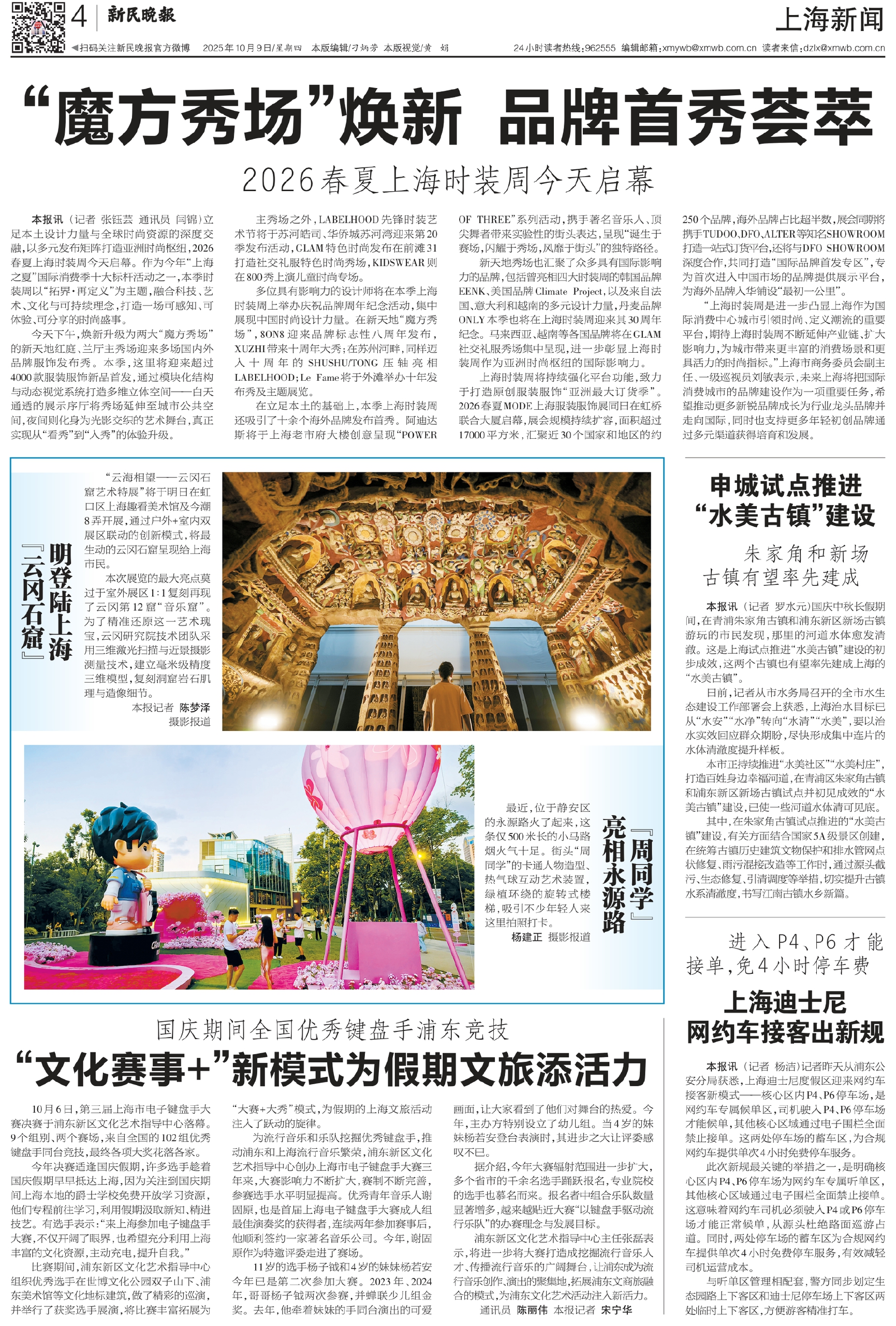 本报讯(记者 张钰芸 通讯员 闫锦)立足本土设计力量与全球时尚资源的深度交融,以多元发布矩阵打造亚洲时尚枢纽,2026春夏上海时装周今天启幕。作为今年“上海之夏”国际消费季十大标杆活动之一,本季时装周以“拓界·再定义”为主题,融合科技、艺术、文化与可持续理念,打造一场可感知、可体验、可分享的时尚盛事。