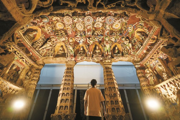 “云海相望——云冈石窟艺术特展”将于明日在虹口区上海趣看美术馆及今潮8弄开展,通过户外+室内双展区联动的创新模式,将最生动的云冈石窟呈现给上海市民。 本次展览的最大亮点莫过于室外展区1∶1复刻再现了云冈第12窟“音乐窟”。为了精准还原这一艺术瑰宝,云冈研究院技术团队采用三维激光扫描与近景摄影测量技术,建立毫米级精度三维模型,复刻洞窟岩石肌理与造像细节。 本报记者 陈梦泽 摄影报道