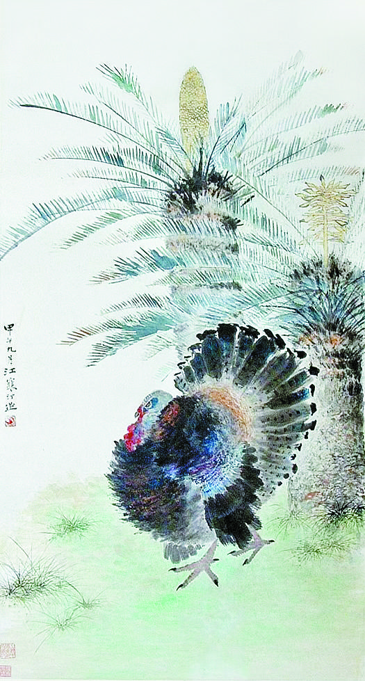 江寒汀《铁树·火鸡》纸本设色 1954年