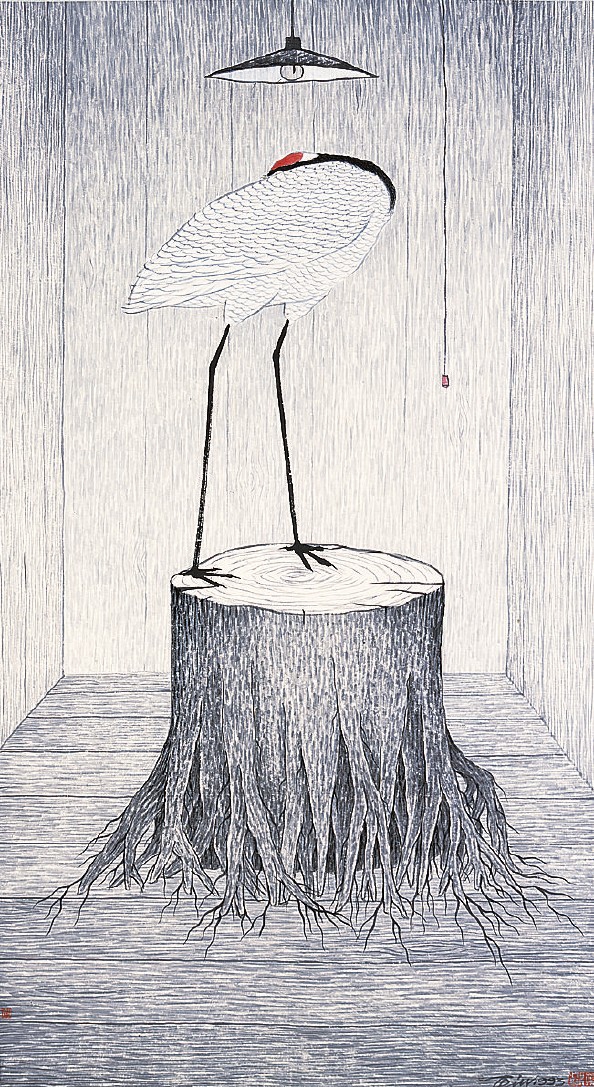 何曦《灯下珍禽》纸本水墨 一九九三年