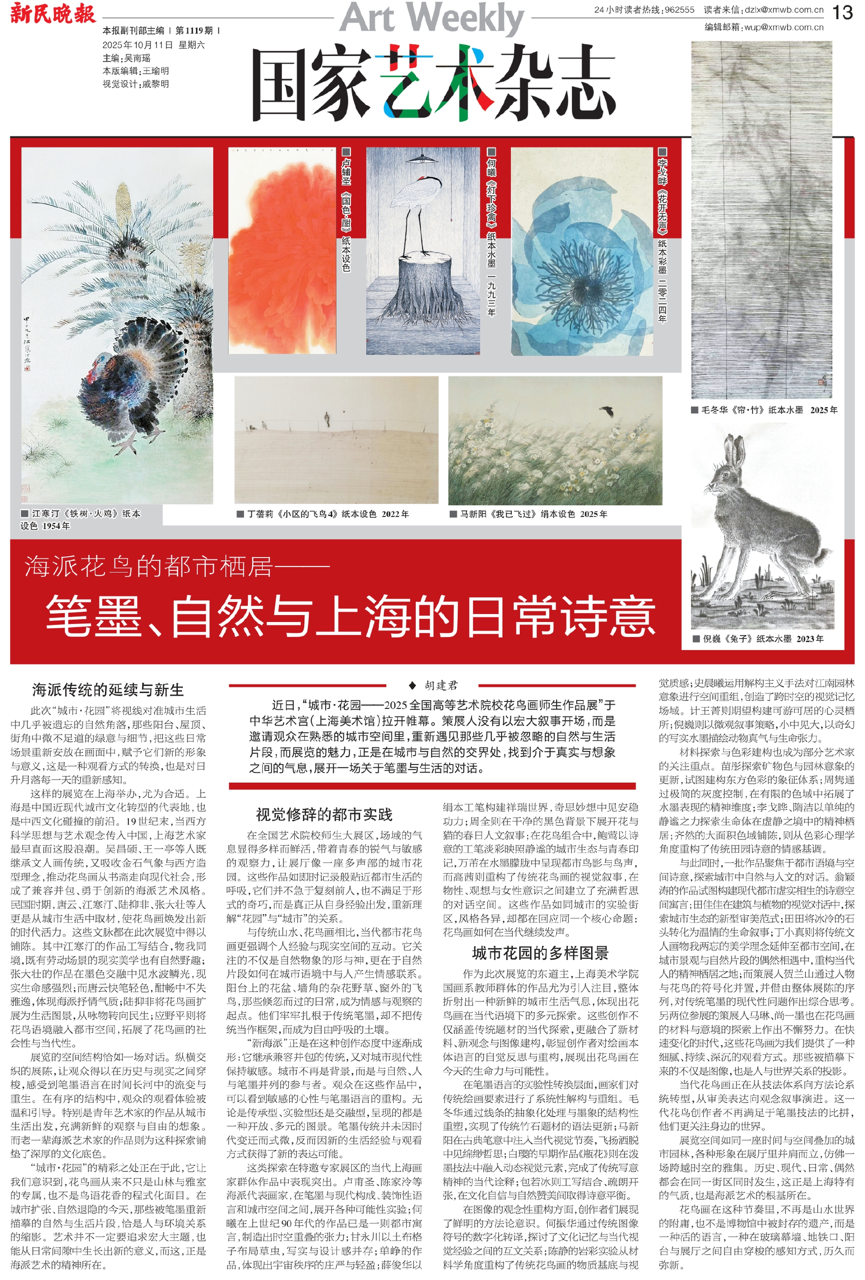 近日,“城市·花园——2025全国高等艺术院校花鸟画师生作品展”于中华艺术宫(上海美术馆)拉开帷幕。策展人没有以宏大叙事开场,而是邀请观众在熟悉的城市空间里,重新遇见那些几乎被忽略的自然与生活片段,而展览的魅力,正是在城市与自然的交界处,找到介于真实与想象之间的气息,展开一场关于笔墨与生活的对话。
