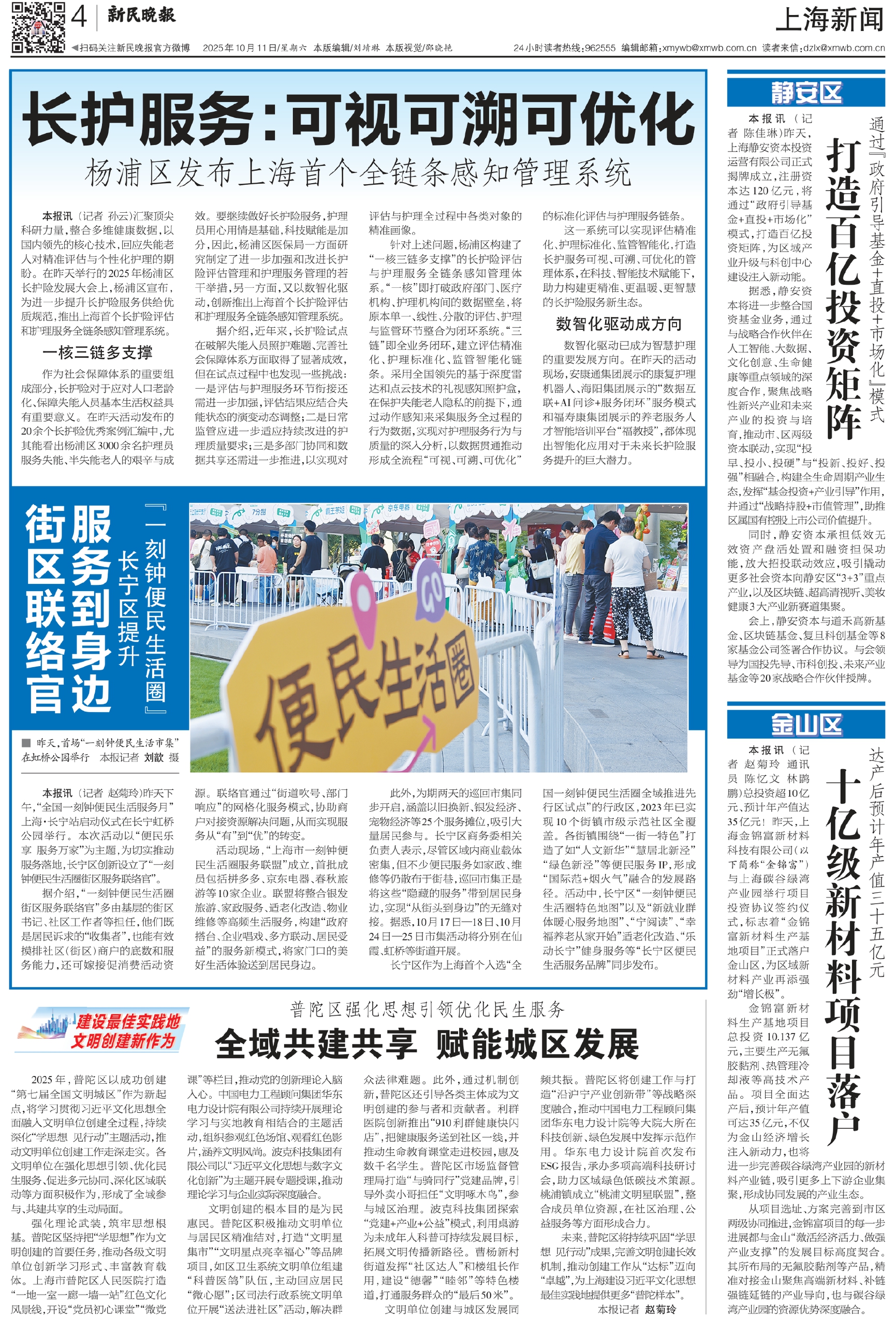 本报讯(记者 孙云)汇聚顶尖科研力量,整合多维健康数据,以国内领先的核心技术,回应失能老人对精准评估与个性化护理的期盼。在昨天举行的2025年杨浦区长护险发展大会上,杨浦区宣布,为进一步提升长护险服务供给优质规范,推出上海首个长护险评估和护理服务全链条感知管理系统。