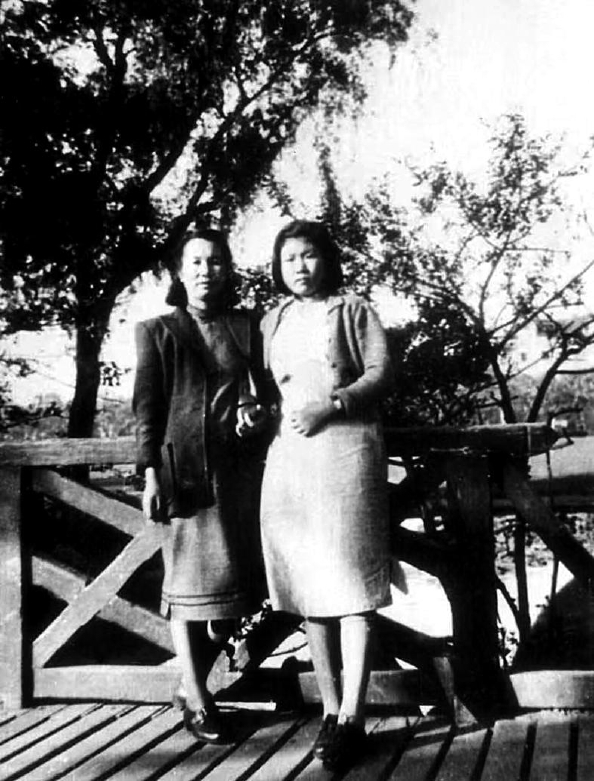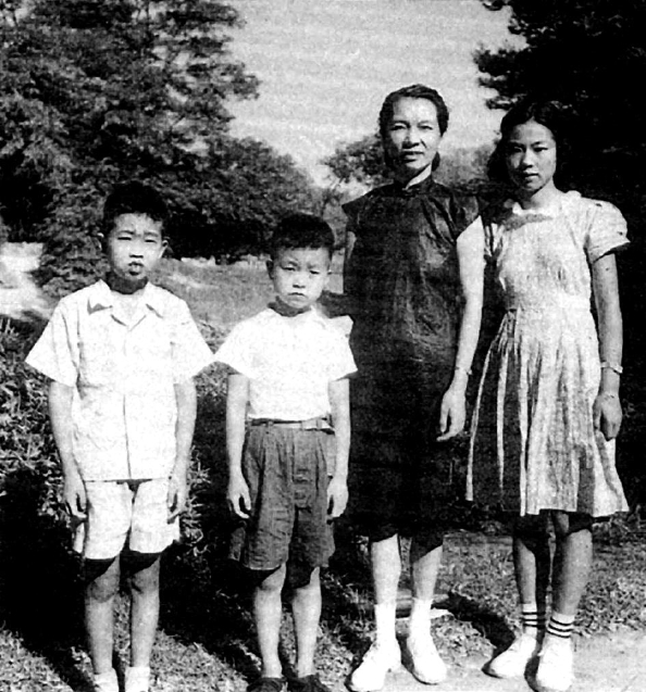 一九四八年夏,朱枫与儿子、外甥女在上海复兴公园
