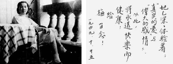 一九四九年朱枫离港赴台前所摄照片和题赠爱人朱晓光的诗句